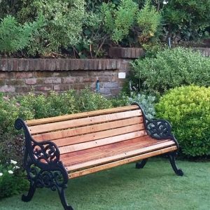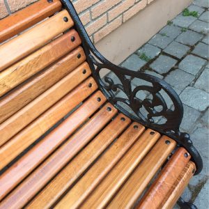 Con patas fundidas y madera nativa, con 8 listones 3×1 y 4 listones 2×1. Protegida con impregnarte y barnizadas. Vendemos hasta escaños hasta 3mt.