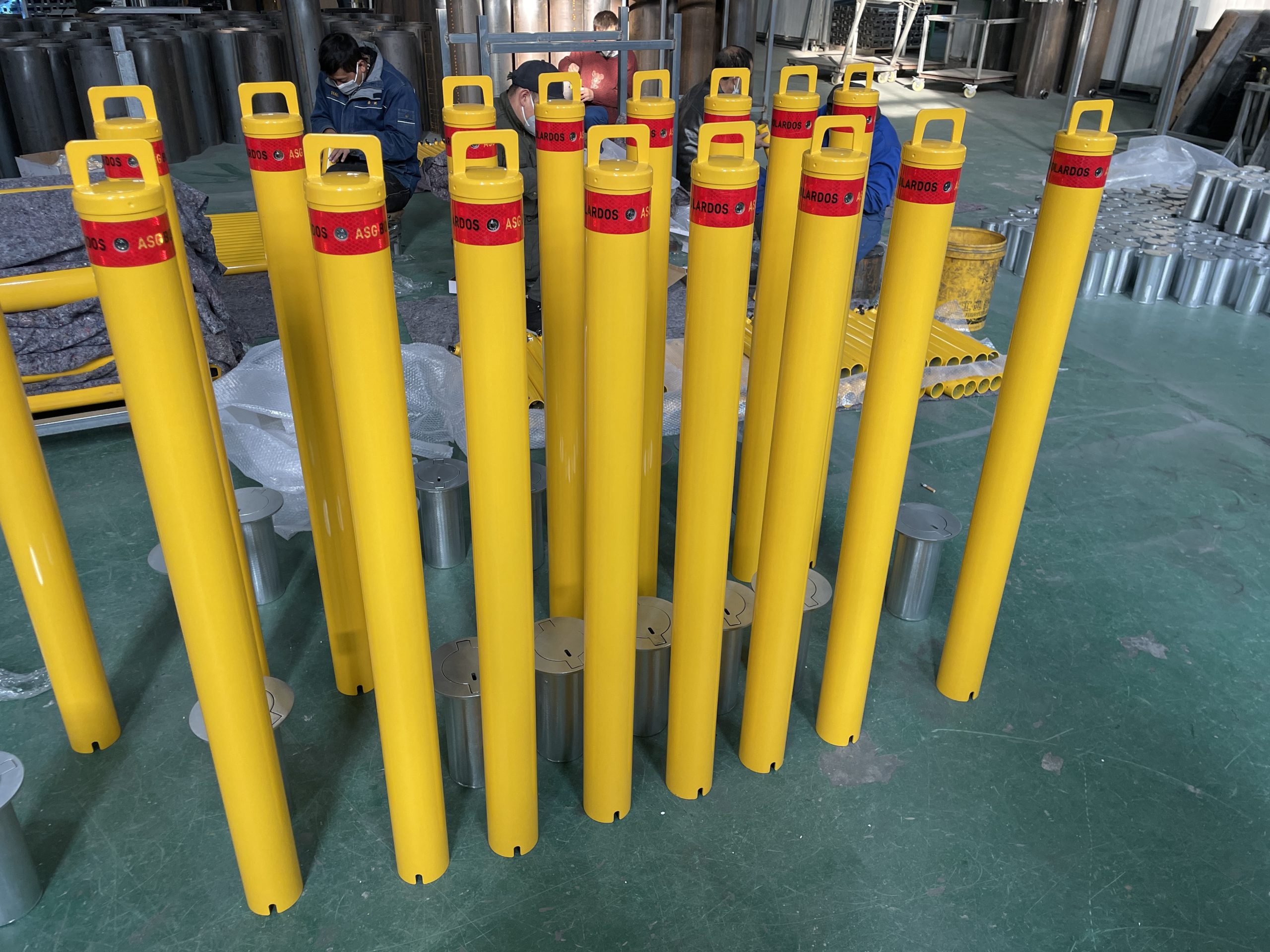 Bolardo Extraíble de acero al carbono, fabricado mediante galvanizado en caliente, con tratamiento electro-pintado al polvo, color amarillo.